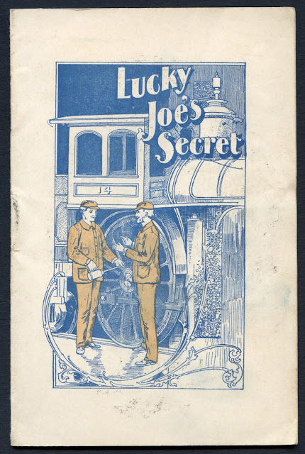 The booklet is basically a story about how a "Lucky Joe" gets ahead in life by being a smart shopper and buying Sweet, Orr & Company work clothes. I find it kinda funny that "Lucky Joe" has saved enough money buying Sweet, Orr & Company goods that he can afford a piano. I guess that was the thing to have back then.