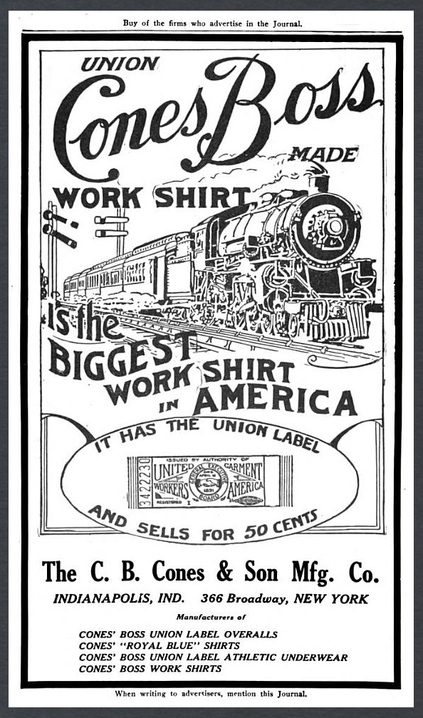 C.B. Cones' Son & Co, was established in 1879 in Indianapolis, Indiana. It was one of the earliest users of the Union Label.